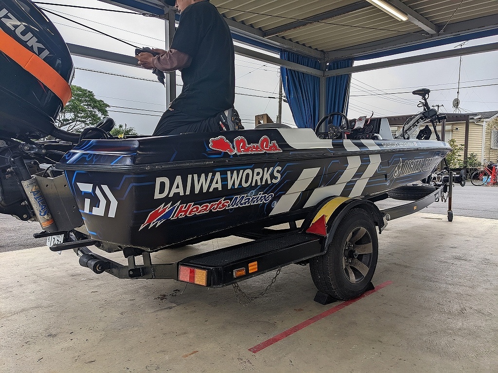 ホンダ釣り倶楽部がワイエムジーワンに!ボートラッピングを施工しました!